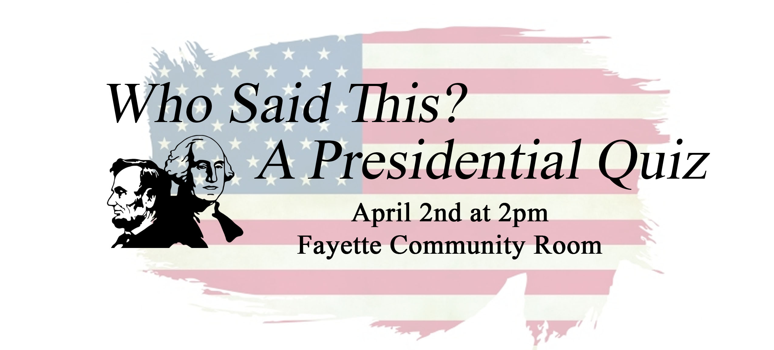 Come test your presidential knowledge April 2nd at 2pm in the Community Room.